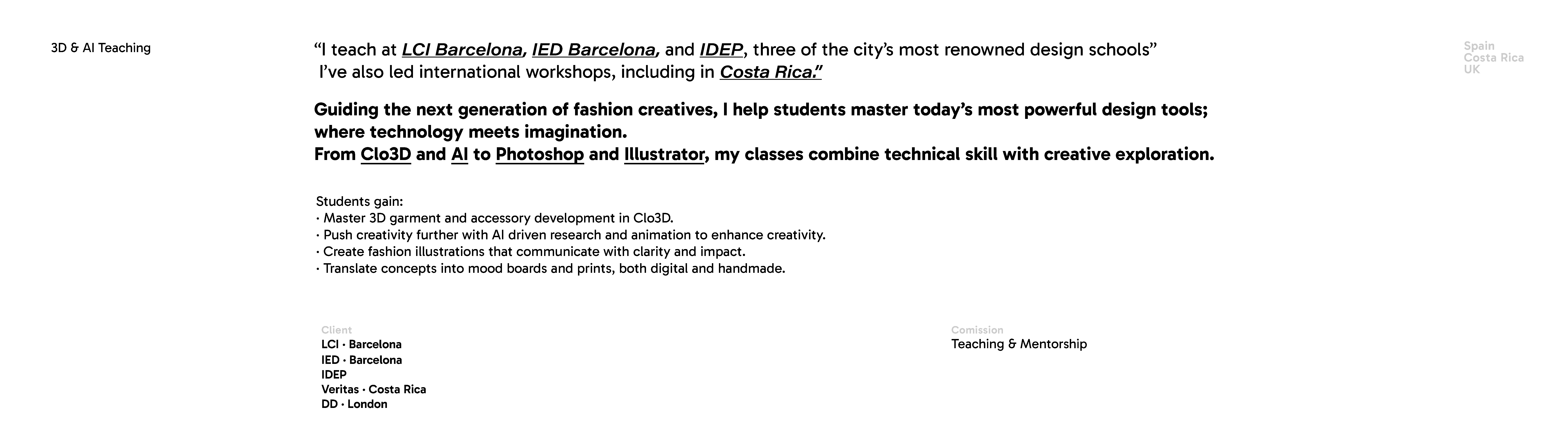 His practice spans 3D and AI fashion design, textiles, illustration, and site-specific art, weaving together culture, technology, and storytelling.